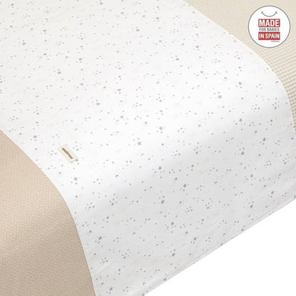 2-piece crib set, consisting of a duvet cover and bumper (including filling) + decorative cushion. The duvet cover is the garment that dresses the crib and serves to protect our baby from the cold, covering it with a garment that, thanks to its filling, makes it especially comfortable and high-quality for their first months of life. Its removable filling makes it a versatile garment for use in winter and summer, and it also offers the advantage of being easy to wash. The bumper, made of fabric with a hollow fiber padding inside, cushions any bumps the baby may have against the crib. Duvet Cover - 110x170 cm Bumper - 210x40x3 cm